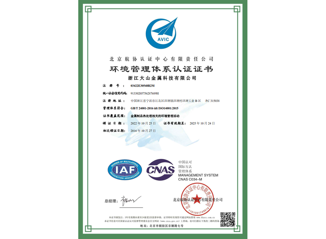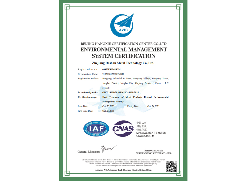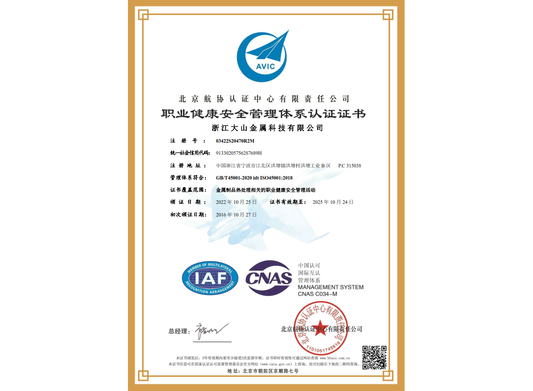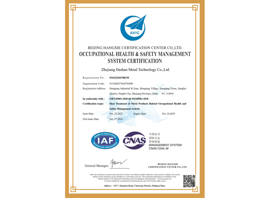經(jīng)過(guò)近35年來(lái)不斷引進(jìn)先進(jìn)的熱處理設(shè)備和技術(shù),使企業(yè)具備了雄厚的產(chǎn)品熱處理工藝開發(fā)和生產(chǎn)能力,在熱處理行業(yè)中取得了令人矚目的業(yè)績(jī),在客戶中建立了良好的口碑。本企業(yè)已通過(guò)IATF 16949:2016 質(zhì)量管理體系、GB/T24001-2016 idt ISO14001:2015 環(huán)境管理體系、ISO 45001:2018 職業(yè)健康安全管理體系認(rèn)證,正全面貫徹執(zhí)行相關(guān)管理體系標(biāo)準(zhǔn),為客戶提供更有保證的全面服務(wù)。大山愿與各界朋友攜手共進(jìn),為提高熱處理質(zhì)量不斷努力!